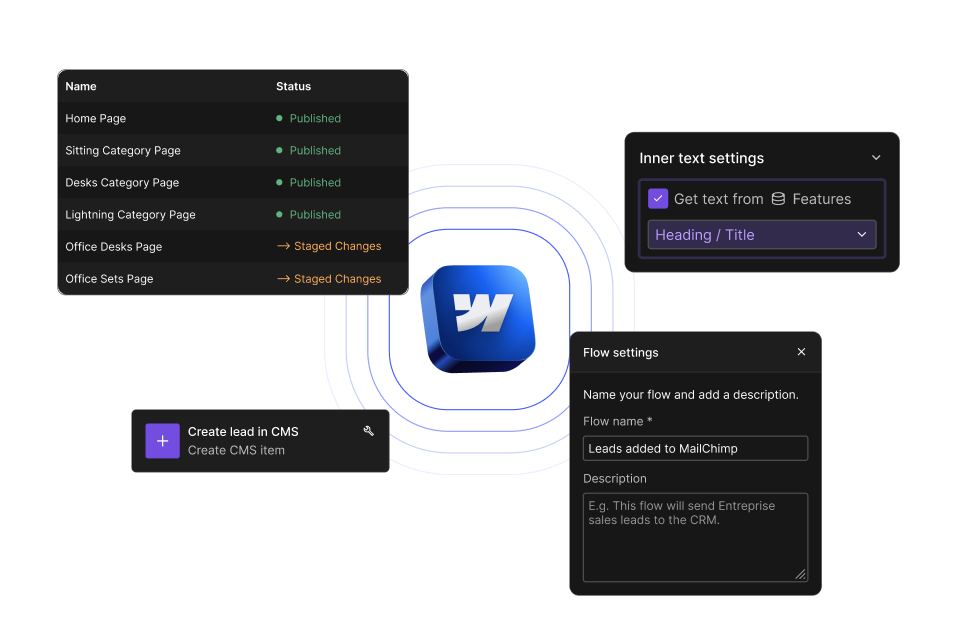 Neben unseren vollständig maßgeschneiderten Web- und Mobil-Lösungen nutzen wir Webflow für Projekte, die eine größere Flexibilität und Erschwinglichkeit erfordern.